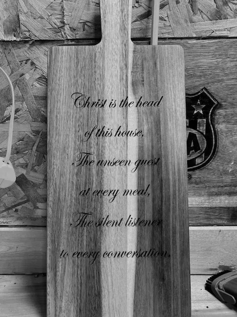 At The Spidles, we blend creativity and faith through two things we love: custom laser engraved cutting boards and uplifting country flavor that speaks to the soul. Whether you're shopping for a meaningful gift or a song to lift your day you’re in the right place.