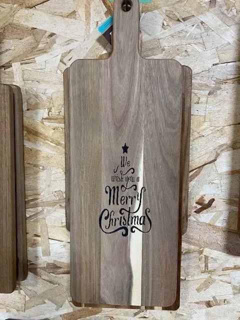 Using precision laser technology, we’re able to engrave clean, detailed designs on a wide variety of woods, including maple, cherry, walnut, birch, and oak. Whether you’re looking to personalize a keepsake, add a custom touch to your home or office, or create something truly unique, our family is here to deliver quality work with a personal touch.